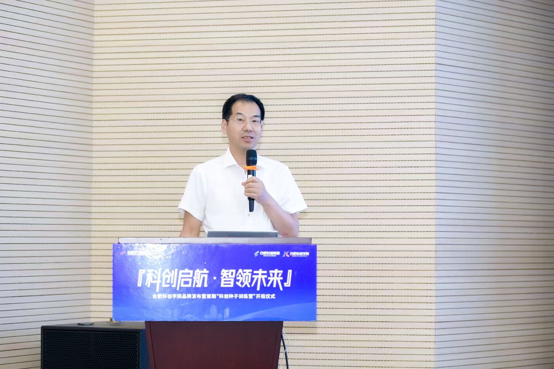 2025年8月1日上午,合肥科创学院品牌发布暨首期“科创种子训练营”开班仪式在合肥产投集团23楼隆重举行。合肥市委科技委员会办公室主任、市科技局局长范进,合肥产投集团党委副书记、董事、工会主席张慧,合肥市科技局党组成员、总工程师高致远等领导出席活动,近百名种子期项目团队代表参加。