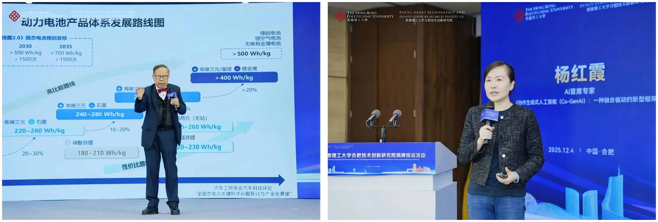 院士专家专题报告环节,中国工程院院士、香港大学荣誉教授陈清泉作题为《人工智能赋能能源革命和汽车革命新征程》的主旨报告,系统阐述了人工智能在能源与汽车产业的深度融合路径,创新性提出“四网四流融合理论”,为现代电动汽车学发展提供了重要理论支撑。香港理工大学电子计算学系杨红霞教授分享了《协作生成式人工智能(Co-GenAI):一种融合驱动的新型框架》专题报告,重点介绍了其在降低AI训练资源需求、提升模型协作效率方面的突破性成果。报告环节聚焦前沿科技,内容翔实深刻,不仅展示了AI、能源、汽车等前沿等领域的最新技术方向,也为皖港创新协同和产业合作开启了新篇章。