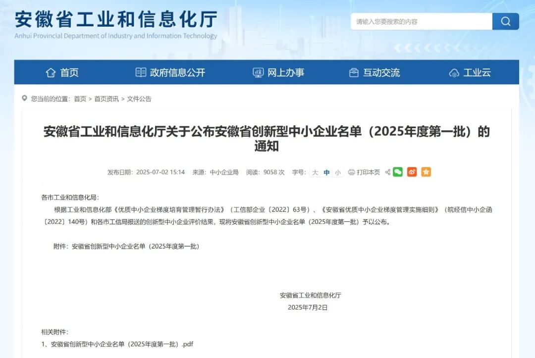 2.2025年度第一批安徽省创新型中小企业名单公布